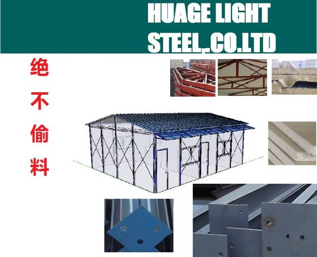 豪华活动房,防火75mm玻璃棉夹芯板,75mm玻璃棉瓦面,华冠耐锈彩卷,2.0足厚钢结构,活动板房价格450元,实木地板。看上去就是80年代的小洋房的一栋活动板房。看上去和在街头巷尾的活动房一样。但是实际上这栋活动房从设计到用料到施工都独具匠心。我们的客户是一个对细节极度讲究的客户,毕竟十多万的活动房,而且这栋活动房设计的使用年限是20年以上。华阁在组织这栋活动房的时候,秉承了绝不偷料,用心服务的原则,钢结构超标2.5,原设计的材料是2.0的厚度,但是为了保证产品的质量,我们直接购买3.0的材料,保质保量!