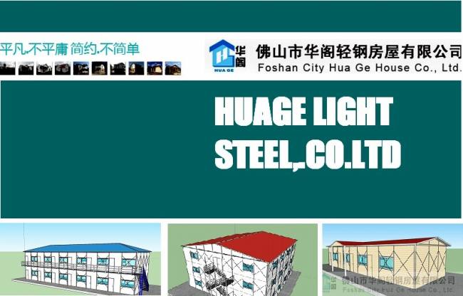 华阁轻钢房屋有限公司是一家出口导向型企业,我们一直从事:钢结构房屋,建筑临建设施,钢结构厂房等研发和出口。我司自2010年回归国内市场以来已为二十多个省市合共千余家客户提供优质的活动板房,集装箱活动房,钢结构别墅,施工围挡,钢结构大棚,并为其提供技术支持和优质的售后服务。华阁凭借优越的活动板房性能,合理的活动板房价格,真诚的售后服务和良好的公司信誉赢得了用户的赞誉和信赖。典型客户有:中铁,中交,中石化,恒大集团,富力地产。我司所生产的活动板房已拓展广州,深圳,珠海,汕头,韶关,江门,湛江,茂名,肇庆,惠州,梅州,汕尾,河源,阳江,清远,东莞,中山,潮州,揭阳,云浮。公司从2001年开始从事轻型