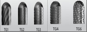 TG4: 双切刀刃,主要用于对于金属材料表面有较高打磨要求的机加工,包括硬质钢材,防锈材料等,加工效率高;