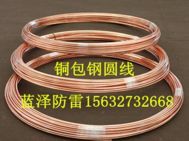 水平连铸铜包钢圆线制造工艺是采用水平连铸,电气性能极佳,表层紫铜材料优良的导电特性,使其自身电阻值远远低于常规材料.防腐蚀性优越独特,由于铜钢结合界面采用高温熔接,所以结合面不会出现残留物,不会出现腐蚀现象;表面铜层较厚(平均厚度大于 0.3mm )耐腐蚀性强,使用寿命长于 50 年,可以大大的减轻检修劳动强度.该产品适用于不同土壤湿度,温度,PH值及电阻率变化条件下的接地防雷.常用作屋顶女儿墙防雷带和垂直接地引上,引下线,水平接地极连接等.