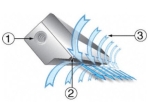 压缩空气经进气口(1)进入气刀高压腔,气流通过狭窄,细薄的喷嘴(2)后在气刀长度方向就形成一张均衡的气流薄片。由于腔室(3)对高压气流的压缩比为40:1,使得气流速度损失最小,而压力最大,于是就 产生一张具有强冲击力而最小剪切力的气流薄片。