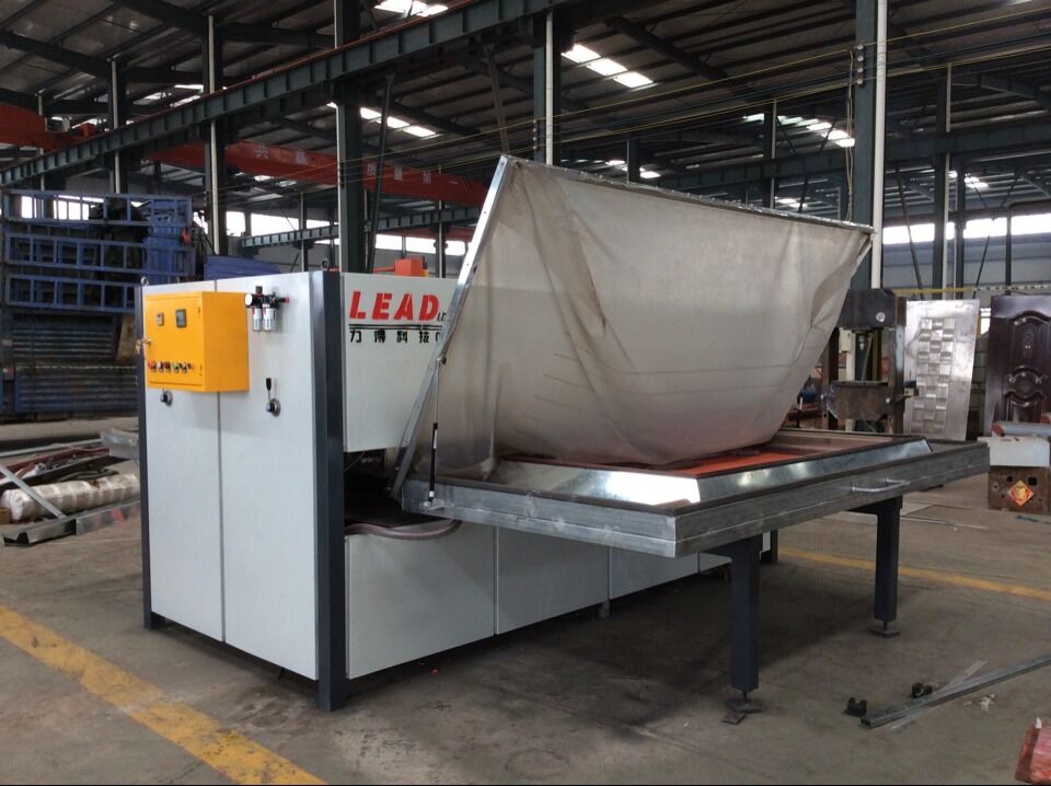 该设备外形美观,结构合理。不但适应门体门框成型后热转印,还适应单板和压花板的木纹转印及铝合金异型材,pvc装饰板等材料的木纹转印,设备经过精心设计,增加了双向使用功能,大大提高了生产功效,降低了生产成本,并充分利用了能源,得到用户的一致好评。设备操作程序完全电力自动控制,简单易学,操作简便,转印时不需要涂胶,双工位的设计提高功率一倍,热转印速度快,质量稳定,用人少,不占用喷涂生产线等优点,从而提高了企业的生产量,降低了生产成本,是门业及其它需要热转印产品的最佳高端产品设备。