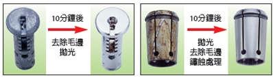 1.轻铁类金属,非铁类金属,硬质塑料等精密零件成品,去除毛边,倒角,抛光,洗净等精密研磨工作一次完成