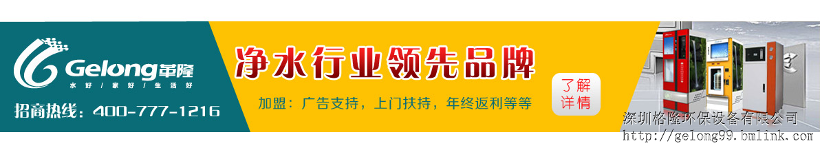 家用净水已成为现代生活的一种潮流,更确切的说已成为一种时尚。若您的家里还未安装净水设备,请别再犹豫了,花点小钱干净一杯水,健康全家人!革隆净水器,微信号:szgelong,QQ:754884782。纯水机十大品牌革隆净水器代理厂家直销!