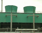冷却塔是利用水和空气的接触,通过蒸发作用来散去工业上或制冷空调中产生的废热的一种设备。基本原理是:干燥(低焓值)的空气经过风机的抽动后,自进风网处进入冷却塔内;饱和蒸汽分压力大的高温水分子向压力低的空气流动,湿热(高焓值)的水自播水系统洒入塔内。当水滴和空气接触时,一方面由于空气与不的直接传热,另一方面由于水蒸汽表面和空气之间存在压力差,在压力的作用下生蒸发现象,带到目前为走蒸发潜热,将水中的热量带走即蒸发传热,从而达到降温之目的的冷却塔。