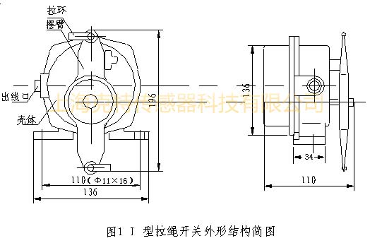 五. 工作原理 当胶带运输机现场发生紧急事故时,可拉动系于摆臂上的钢丝绳,使摆臂旋转而带动机内凸轮并感应微动开关,发出停机信号。
