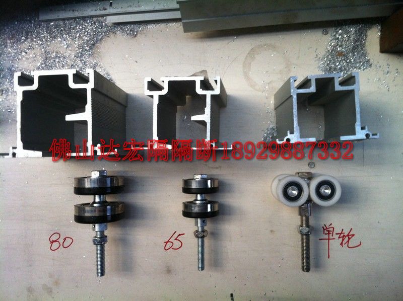 活动隔断配件及各型号隔断屏风铝型材,主要有吊轮,轨道,滑轨,导轨,(65/60/85/100/超高型,重型移门),角码,搞手,搞手套,胶粒,卡簧,有伸缩头,传动杆,门中门合页,不锈钢四方锁盘等所有配件。