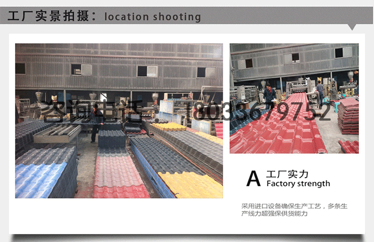 我公司目前拥有生产线29条,车间工人达300多人,是目前我国树脂瓦最具