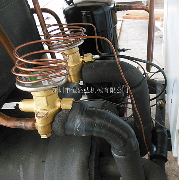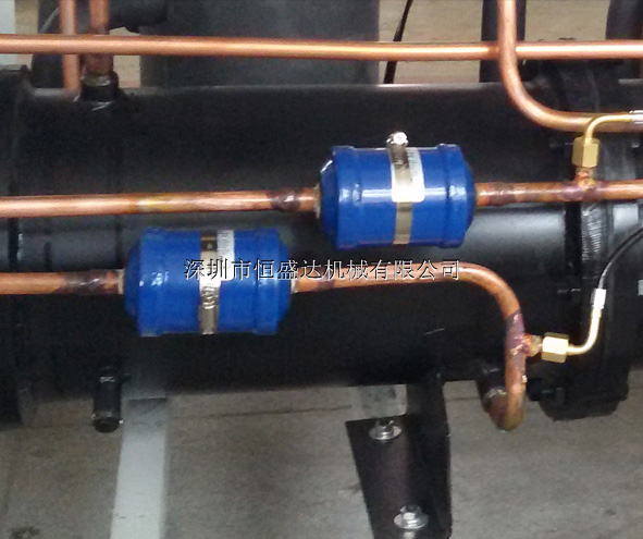 A,水冷式: (壳管式)冷凝器加装冷却塔散热。B,风冷式:(翅片式)冷凝器通过机台本身风扇散热。