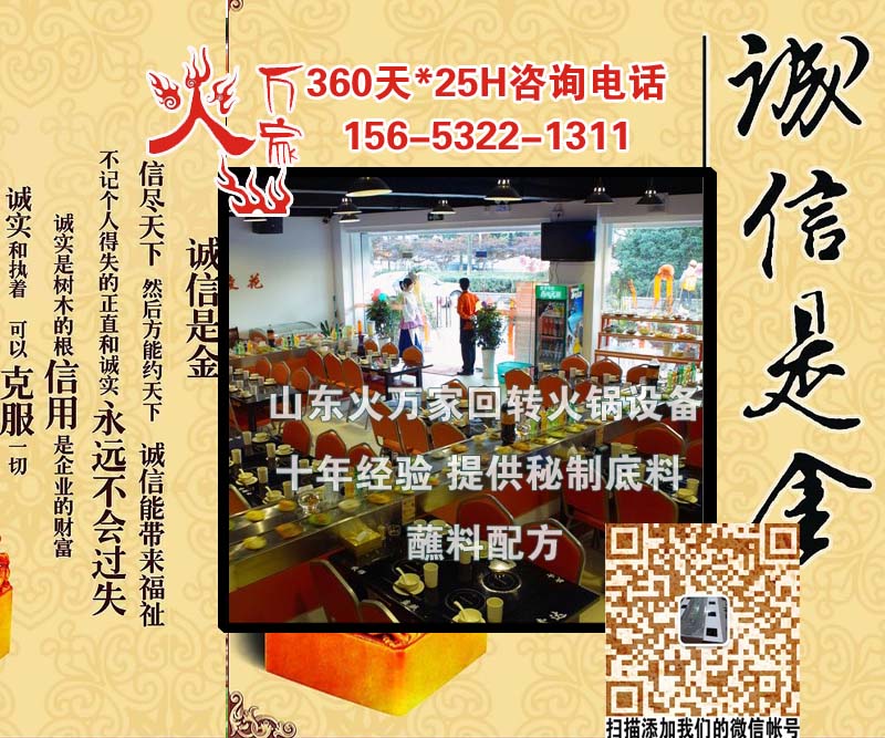山东火万家机械设备有限公司是一家专业研制,开发,生产,制造,安装,调试,售后服务为一体的的公司。自公司成立以来致力于各种输送设备,旋转火锅设备,回转火锅设备,回转火锅,自动传送设备等一系列的全套设备。