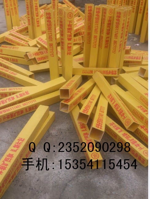 1,天然气管道标志桩材料:高强度玻璃纤维复合材料模压制作(回收无用)。