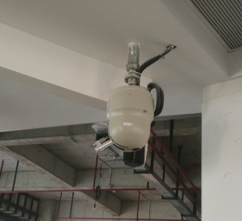 ZSS-25A 水炮(具体参数:标准保护半径 r≤32m;安装高度 8m≤h≤35m;压力 P=0.6MPa;标准喷水流量 q=5L/s。高空水炮,机电一体化(包括探测,信号处理,发出报警信号,启动水泵,扫描火源,自动定位射水灭火,关闭水泵,回复到监视状态))