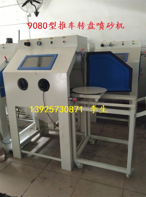 9080型箱式喷砂机有9080推车转盘型手动喷砂机,9080双枪滚蓝式自动喷砂机,9080型侧开门,双侧开门,9080型液体喷砂机