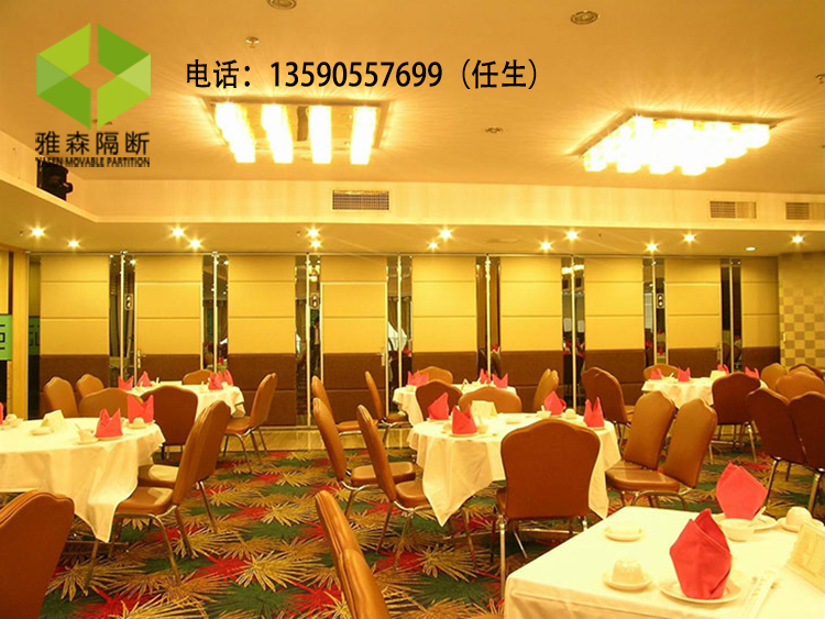 酒店屏风,活动隔墙,高级移动隔断,移动隔音墙,酒店隔断隔音屏风,多功能会议室,酒店,酒楼,饭店,餐厅,展览厅,展馆,办公室等场所使用。是具有高度灵活,稳固,和观赏性的装饰品,可随意组合和分隔房厅,起到一屋多用一厅多能使用。咨询电话:13590557699