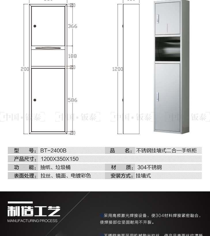 上海钣泰不锈钢酒店专用挂墙式二合一手纸柜上海钣泰不锈钢酒店专用挂墙式二合一手纸柜产品概况
