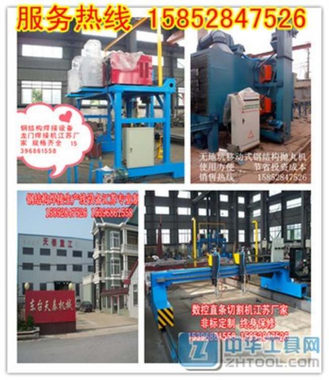 钢结构加工设备厂家的组立机|龙门焊|矫正机|抛丸机|剪板机|木工机械|等产品由东台天泰机械制造有限公司生产,公司座落在物阜民丰的东方湿地之都-东台.是集研发、制造、服务于一体的专业制造商.是江苏东部专门从事钢结构焊接设备和焊接辅机的生产厂家.我公司产品规格齐、品种多、成套化、系列化。客户范围包括航天航空、工程机械、化工设备、化工机械、锅炉压力容器、钢结构、电力设备、风塔筒和管道加工及船舶制造业等。