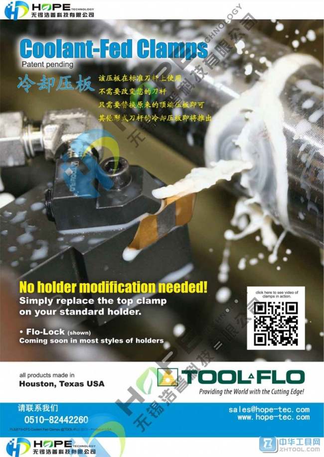 TOOLFLO冷却液压板提高刀片寿命 18915265163顾女士