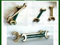 双头呆扳手系列(mm)8*10、10*12、12*14、14*17、16*18、17*19、19*22、22*24、24*27、 27*30、30*32、32*34、32*36、34*36、36*38、36*41、38*41、41*46、46*50、50*55、55*60、 60*65、65*70、70*75共24种规格,这些产品规格应该能满足客户朋友们的大量需求。材质分为铝青铜和铍青铜两种。这两种材质从颜色分铝青铜是黄色的、铍青铜是黄红色。从硬度分铝青铜HRC25而铍青铜HRC35。两种材质的产品都具有同样的防爆功能,其中的铍铜产品还有防磁的功能,因此对于工作环境要求更加严格的工作场所里特别适合使用。