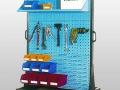 独立型物料整理架由挂板、座底及二支脚组合而成。方孔挂板及百页挂