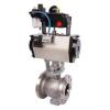 产品特性 1、我公司引进欧洲技术开发生产的气动V型调节球阀,阀芯上开有V型切口,与硬密封阀座相对转动产生剪切力,可将纤维切断,防止卡死。具有流通能力,调节精度高,