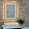 商品名称: LED防雾镜(磨圆角) 型号: FW-6080 规格(长*宽*高): 80*60*4.5CM(有背板) 80*60*3CM(无背板) 材质: 铝合金框,5MM