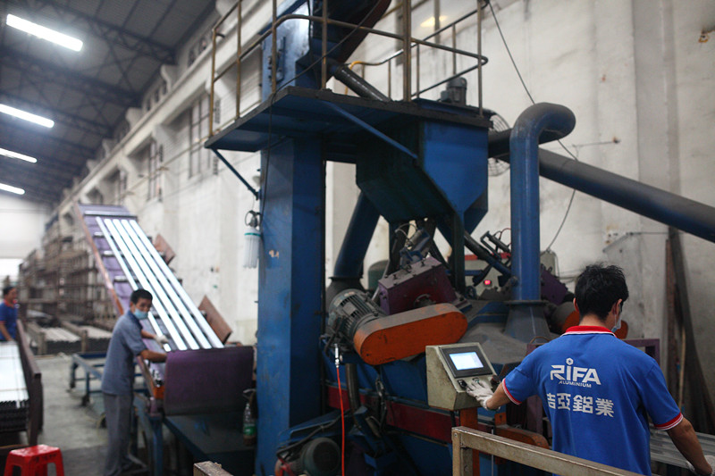 佛山市吉亚铝业有限公司的挤压车间有8条挤压生产线,挤压能力从600吨至2000吨,可生产断切面直径从3mm到280mm的各种型材,年生产能力达到30000吨。挤压车间配备了升降式高温滑出台,最大限度的保证了产品前期的表面质量,车间还配备了6台时效炉,能够处理长达8米的T4、T5、T6硬度的铝型材。喷砂车间采用德国不锈钢砂粒,喷砂面均匀细腻。氧化车间引进国内生产的具有国际先进水平的氧化着色、电泳涂装生产线,采用全自动化的水平双互电解着色氧化生产工艺,年生产能力18000吨。可以生产银白色、黑色、香槟色、K金色、紫铜色、钛金色等膜厚度8-30微米的氧化铝型材以及有色电泳铝材。电泳涂漆产品在铝氧化膜微孔中注入丙烯的树脂漆形成复合膜双重保护,使铝型材不褪色,特别适用于气候恶劣,雨水较多的地区。喷涂车间有国内最先进的粉末喷涂生产线两条,配备瑞士进口金马喷枪,总产各种颜色的喷涂铝型材10000吨以上。木纹车间配备多台国内最新技术的真空木纹生产线,可在电泳铝材及喷涂铝材基础上真空转印出丰富多彩的仿真木纹及各种彩色的表面效果。