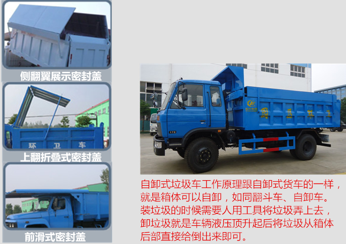 东风145自卸式垃圾车又称密封式垃圾车,是收集、中转清理运输垃圾,避免二次污染的新型环卫车辆,其主要特点是垃圾收集方式简便、高效.环保性好,整车利用效率高,广泛适用于适用于环卫、市政、厂矿企业、物业小区、垃圾多而集中的居民区、城市街道垃圾处理,均具有密封自卸功能,液压操作,倾卸垃圾方便。