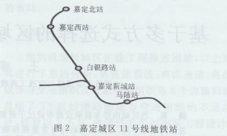 其中,根据嘉定主城区总体规划(2004~2020年),黑色线条将嘉定城区分为8个区域,路网由地面道路、高速公路、公交线路、地铁线路组成,其中,地面道路连接所有出行节点,地铁线路特指十一号线。结合十一号线,该研究区域内P&R设施备选点位共5个,分别位于嘉定北站、嘉定西站、白银路站、嘉定新城站和马陆站,见图2。