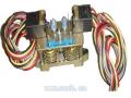 采用十进制计数器原理,又称为计数器,控制精度高,结构见图7。其工作原理为:由减速箱内的一对大小伞齿轮带动中传小齿轮,再带动行程控制机构工作。如果行程控制器按阀门开、关的位置已调整好,当控制器随输出轴转动到预先调整好的位置(圈数)时,则凸轮将转动90°,迫使微动开关动作,切断电动机电源,电动机停转,从而实现对电动装置行程(转圈数)的控制。