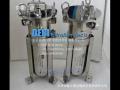 液体多袋式过滤器采用侧进底出方式(也可采用底进底出方式),通过管道中的压力将过滤液体介质压入或抽入袋式过滤器桶体,要过滤的液体介质经由电抛光冲孔支撑滤蓝承托的液体过滤袋的过滤,产生理想的固液分离达到液体介质被过滤的效果。不同的过滤精度,取决于不同精度的液体过滤袋。